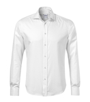 navrženo předním českým krejčím Romanem Humlíčkem, příze z extra dlouhých vláken, zúžený střih s bočními švy, dvojité sedlo a záševky na zadním dílu, dvoudílný košilový límec, vyztužené špičky límce, přední kraje začištěny légou, dlouhé rukávy s kulatou manžetou na 2 knoflíčky, perleťové knoflíčky v barvě 00 (2 náhradní navíc), tvarovaný dolní kraj